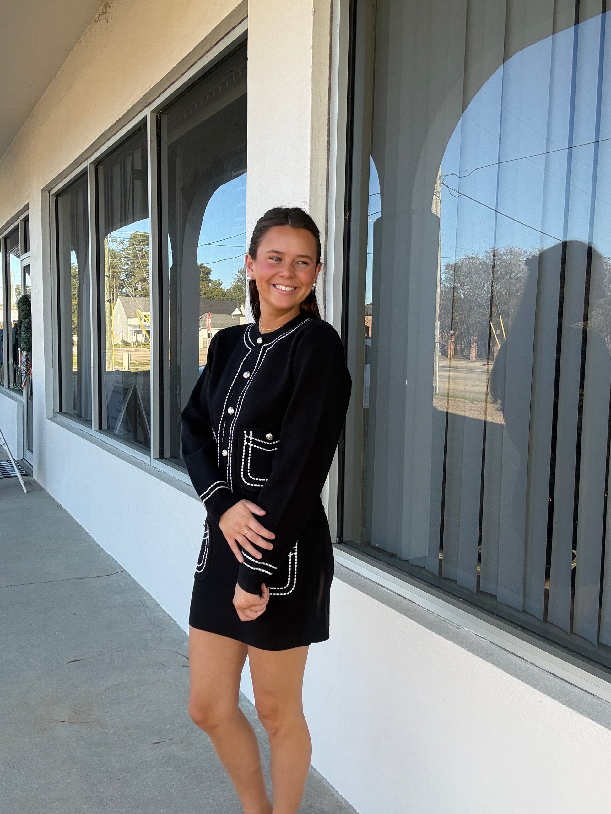 Make a statement at your next gathering with this Black Stitch Embroidered Set. Crafted from soft, comfortable sweater material, this coordinated ensemble features intricate black stitch embroidery that adds sophisticated detail and visual interest. Perfect for parties and special occasions, the set combines style with wearability. The quality construction ensures you'll reach for it again and again, whether you're dressing up for an event or elevating your everyday look. Embrace the elegance of thoughtful design with this versatile piece.