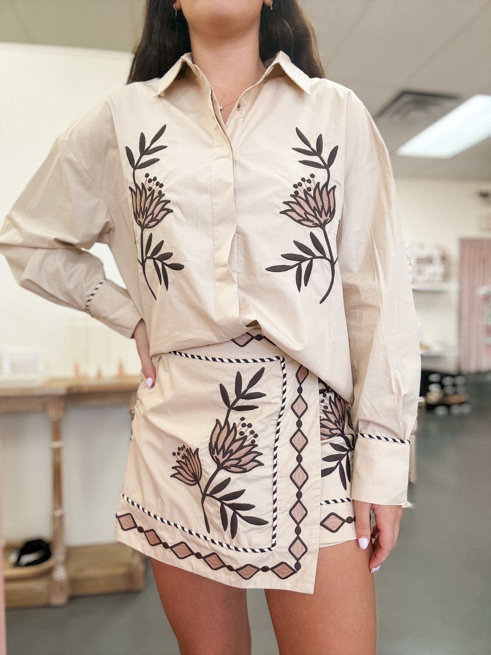 Celebrate your western spirit with the Out West Embroidered Set Skirt. This wrap skirt features delicate floral embroidery that adds a charming, rustic touch to your look. Designed for comfort and style, it’s perfect for embracing a laid-back, country-inspired vibe with ease. Pair with the top for an elevated look!