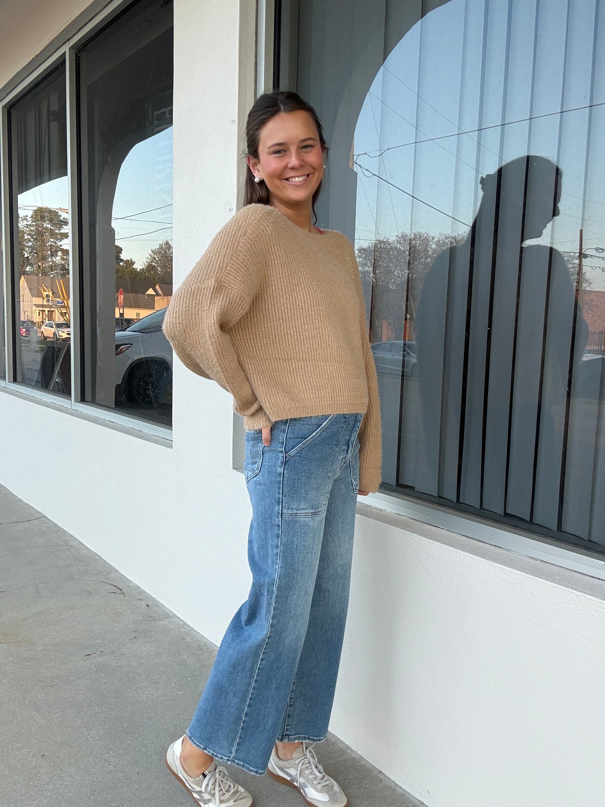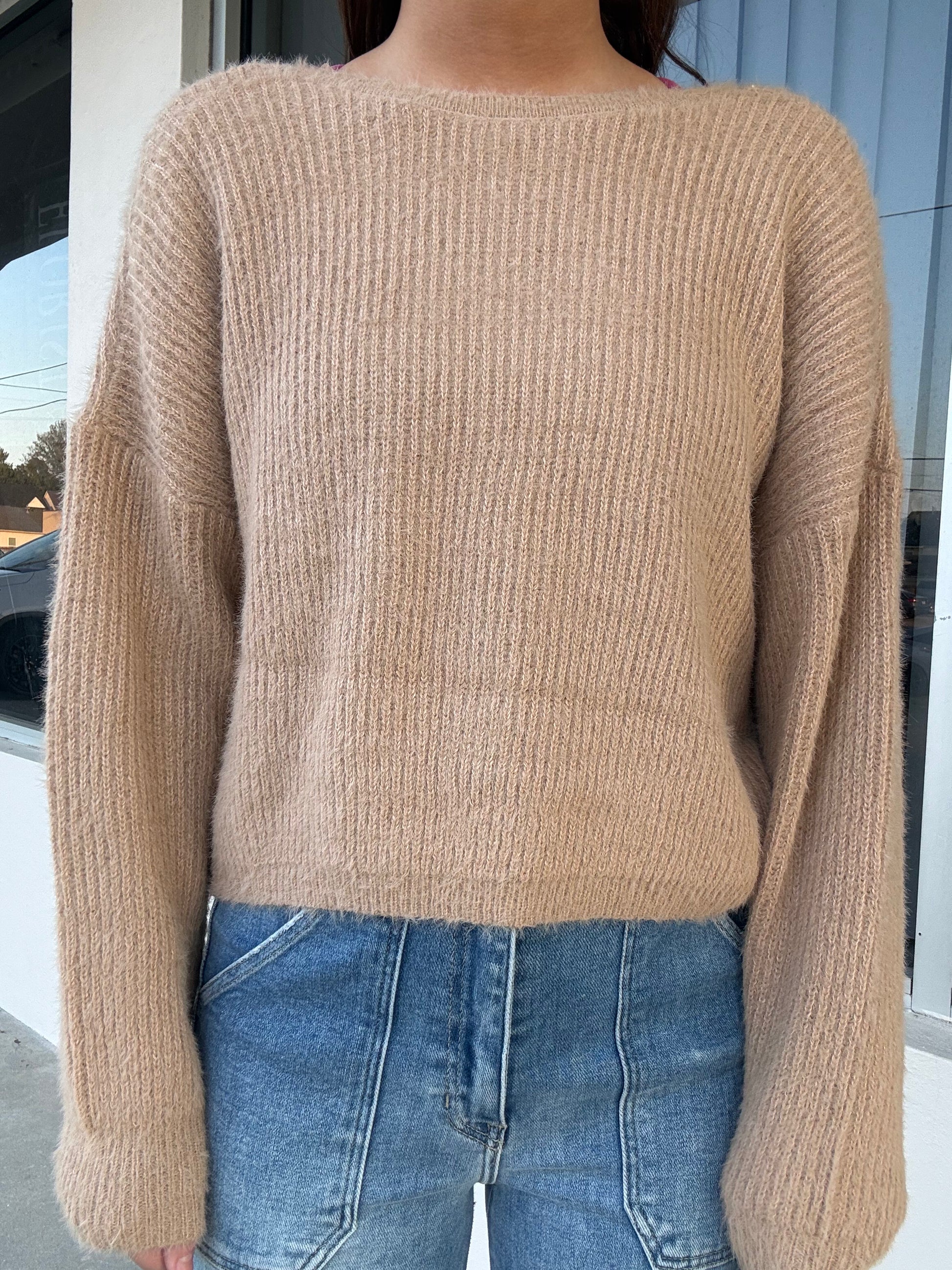 Elevate your wardrobe with this versatile Tan Frosted Tie Back Top. The soft, frosted fabric drapes beautifully while the charming tie-back detail adds dimension and flatters your silhouette. Whether you're dressing it up for a night out or keeping it casual with your favorite jeans, this sweater top transitions effortlessly between occasions. Perfect for layering or wearing solo, it's the kind of piece you'll reach for again and again.