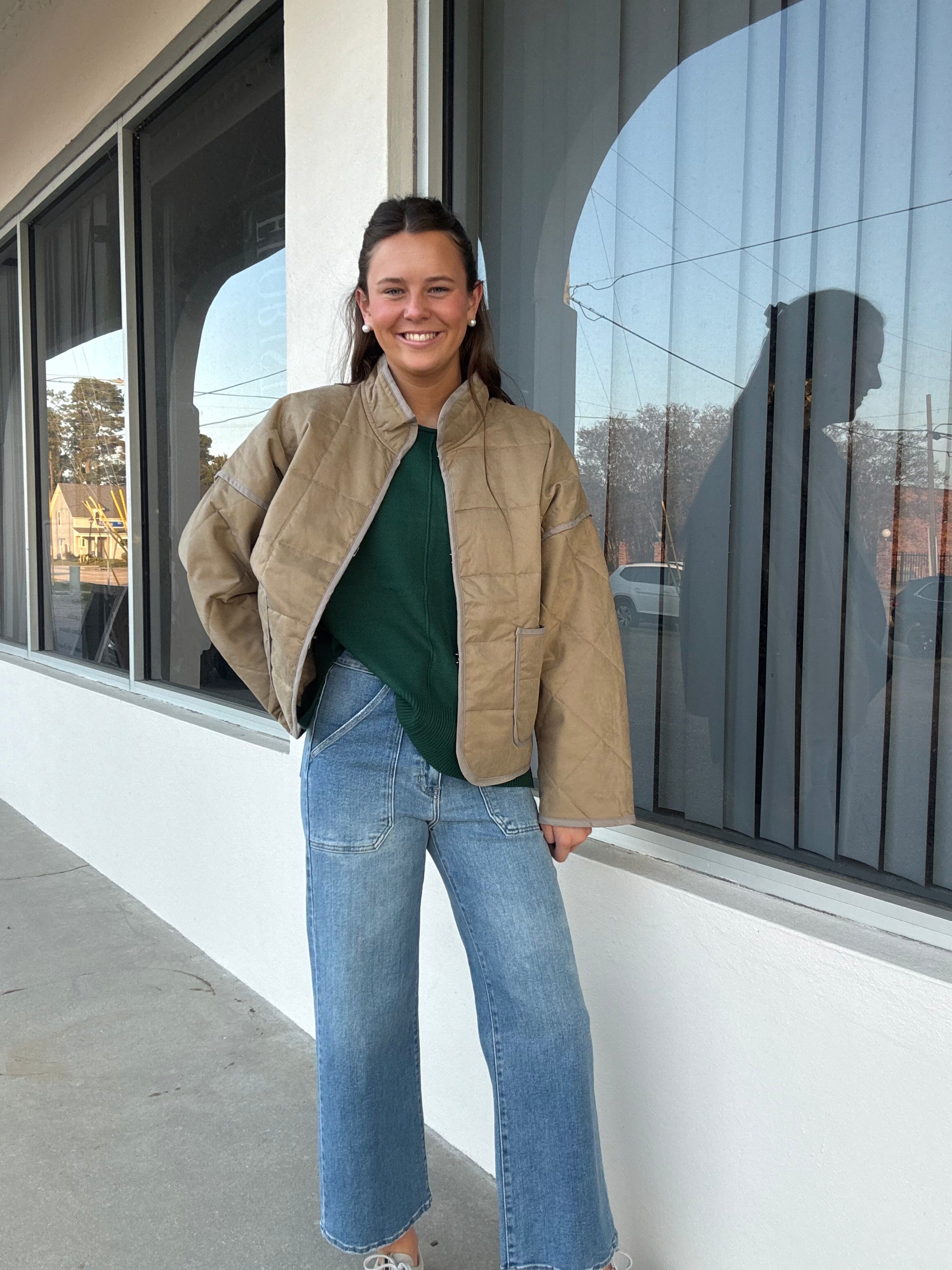 Embrace effortless style with this tan puffer jacket, designed to keep you comfortable without the bulk. The lightweight construction makes it perfect for layering through transitional seasons, while the generous oversize fit allows for easy movement and a relaxed silhouette. Its neutral tone pairs seamlessly with any wardrobe, making it a versatile essential you'll reach for again and again. Whether you're running errands or meeting friends, this jacket delivers warmth and contemporary appeal in one.
